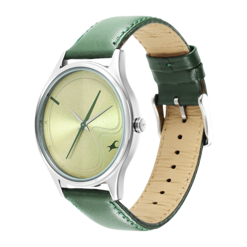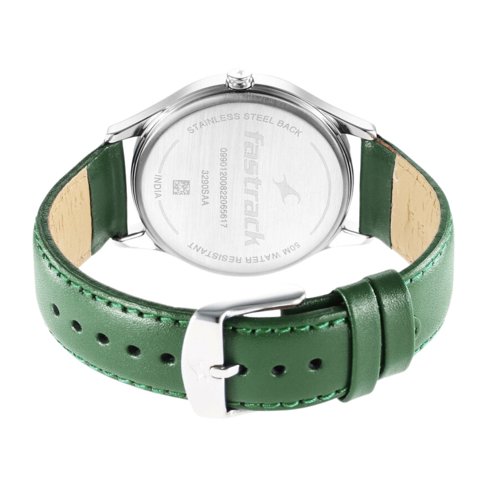 Fastrack Stunners Green Dial Leather Strap Watch for Guys NR3290SL02