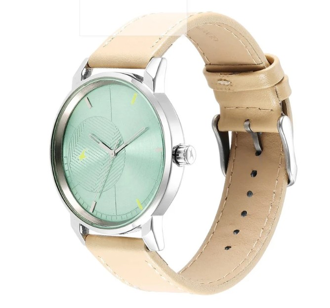 Fastrack Stunners Quartz Analog Green Dial Leather Strap Watch for Guys 3278SL02