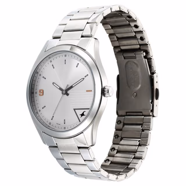 Fastrack Stunners Quartz Analog Silver Dial Silver Metal Strap Watch For Guys (3317SM01)