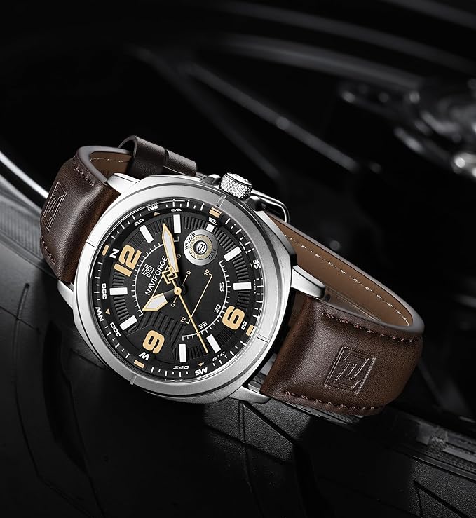NAVIFORCE NF8078 Modern Sporty Style Leather Strap Analog Watch