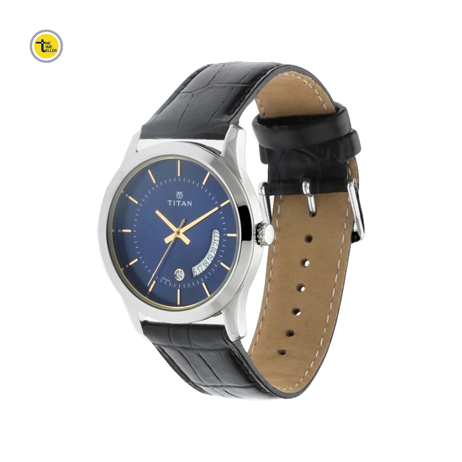 Titan Blue Dial Analog with Date Leather Strap watch for Men-(NT1823SL01)
